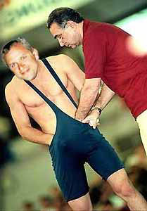 But to satisfy your hunger for some MALE HOTNESS, I got this old classic picture of Evil Chris from his wrestling days.