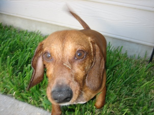 Named him "Sizzles"... after the Dachshund in the kid's cartoon "Charlie and Lola" (my son loves that cartoon series and the books).