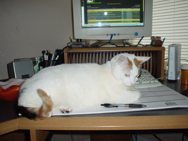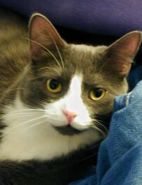 Angeleyes, I have a cat that looks a lot like this one. Unfortunately i odnt' have a digicam or a scanner around to take a pic of him. He's grey with a white patch on his chest.