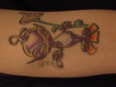 thanks, that was my 25th birthday present to myself. The guy who did it in New Orleans (at AAArt) was supposedly doing a spread in tattoo magazine that month, had me sign a waiver and shit he wanted to use it for the spread (I brought him a drawing to do it from) I dunno if it ever went into the mag or not though (if anyone has any past issues from 2000 anytime after january take a look for me lol I'll buy the mag from ya)