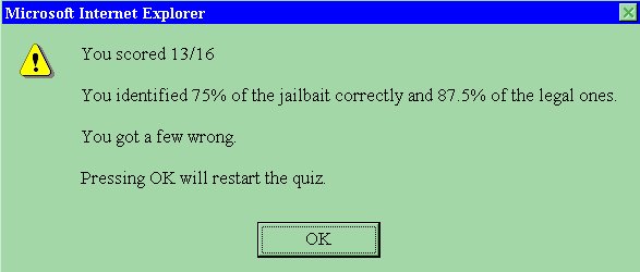 I scored 11/16, but thankfully the only ones I got wrong turned out to be legal and not jailbait. So I guess that makes me over-cautious.