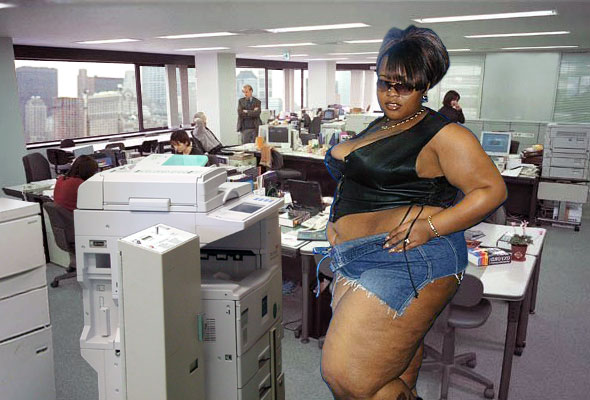 PLEEEEEEEEEEZ don't tell me she's gonna sit on that xerox machine!