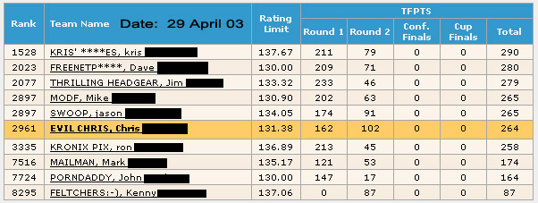Why is that? You know, you can make trades and switch players in and out from round to round. I did, but I reached my maximum, so I still have one player on my team (Kaberle) who is inactive.