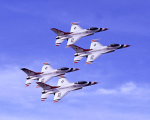 The United States Airforce Thunderbirds use F-16 Falcons.