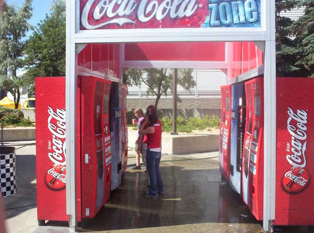 I saw the coolest coke machine on the weekened. It shot A fine sine mist of water over head. It was so refreshing and great chance to see girls get thier tshirt wet. I loved it.