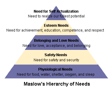 And FB, yeah I studie Maslow's theory in marketing class actually. There was another theory that brought it down to four principles, but I forget which one it was.