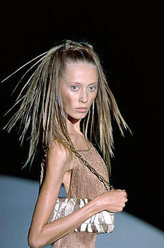 That second pic, that girl looks like she will be crawling back down the run way, who hires these models?? Someone give that girl a muffin and call her mom.