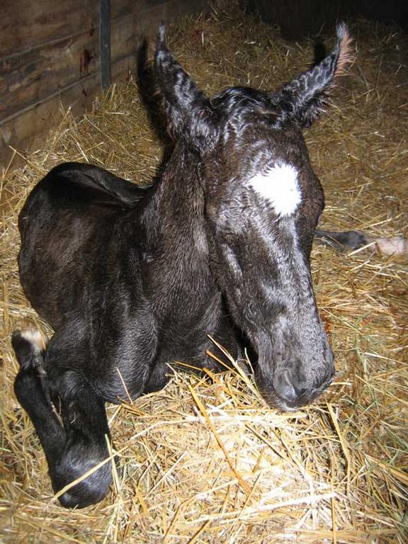 Roxanne foaled last night around 8pm and had a filly. Here are some pics, though I didn't get any real play by play action because one of the other mares was trying to steal the foal at birth and we had to chase her away.