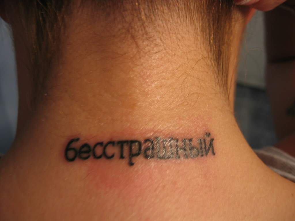 I have the tattoo picked out It's бесстрашный (means Fearless in Russian) I'm part Russian and I find it represents me well. I just don't know where to put it. Any suggestions. It will be my 7th and LAST tattoo