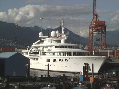 The co-founder of Microsoft has had his 300Ft Yacht parked in front of my place for the last week. It's the 12th largest private yaght in the world, he own the largest as well. It has two Ski boats attached to either side of it, not one but 2 heli-pads and he has a full sized helicopter on this boat right now..that I can't get a good pic of. Full time staff of 30.. now this is bling !