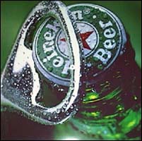 is drinking Heineken