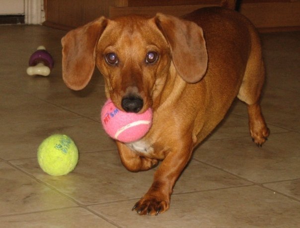 Named him "Sizzles"... after the Dachshund in the kid's cartoon "Charlie and Lola" (my son loves that cartoon series and the books).