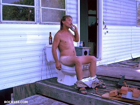 I cant believe he is just sitting on the phone and yakking while takin a dump outside!!