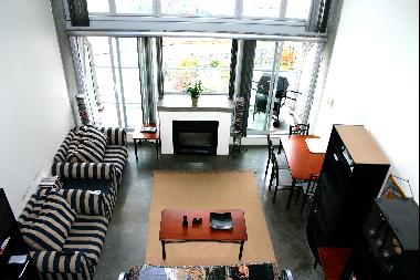 (crazyal) my b/f bought one last year right beside the Staples Downtown /Seymour the Round Artsy Farty Building Its also high ceilings like yours and bedroom u walk up the stairs to the Room .