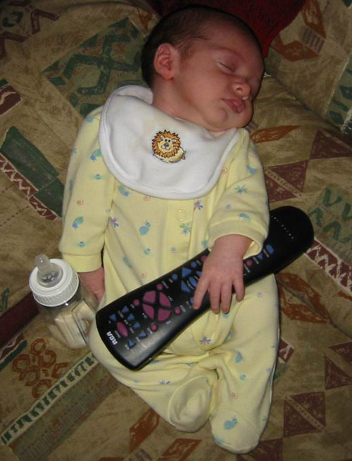 He's already hogging the remote!  Gotta wonder if he was really drinking milk?!?
