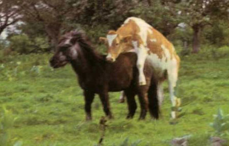 cow playing with a friend, yes we got also many horses here.... and itŽs so boring in the black forest, that they play together.....