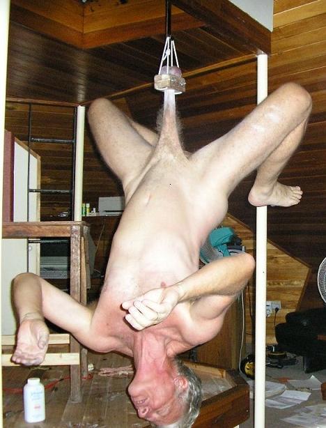It's amazing how the top half turns completely white, drained of blood or strained beyond tissue endurance.... You gotta practice to be able to put all that weight on your dick...